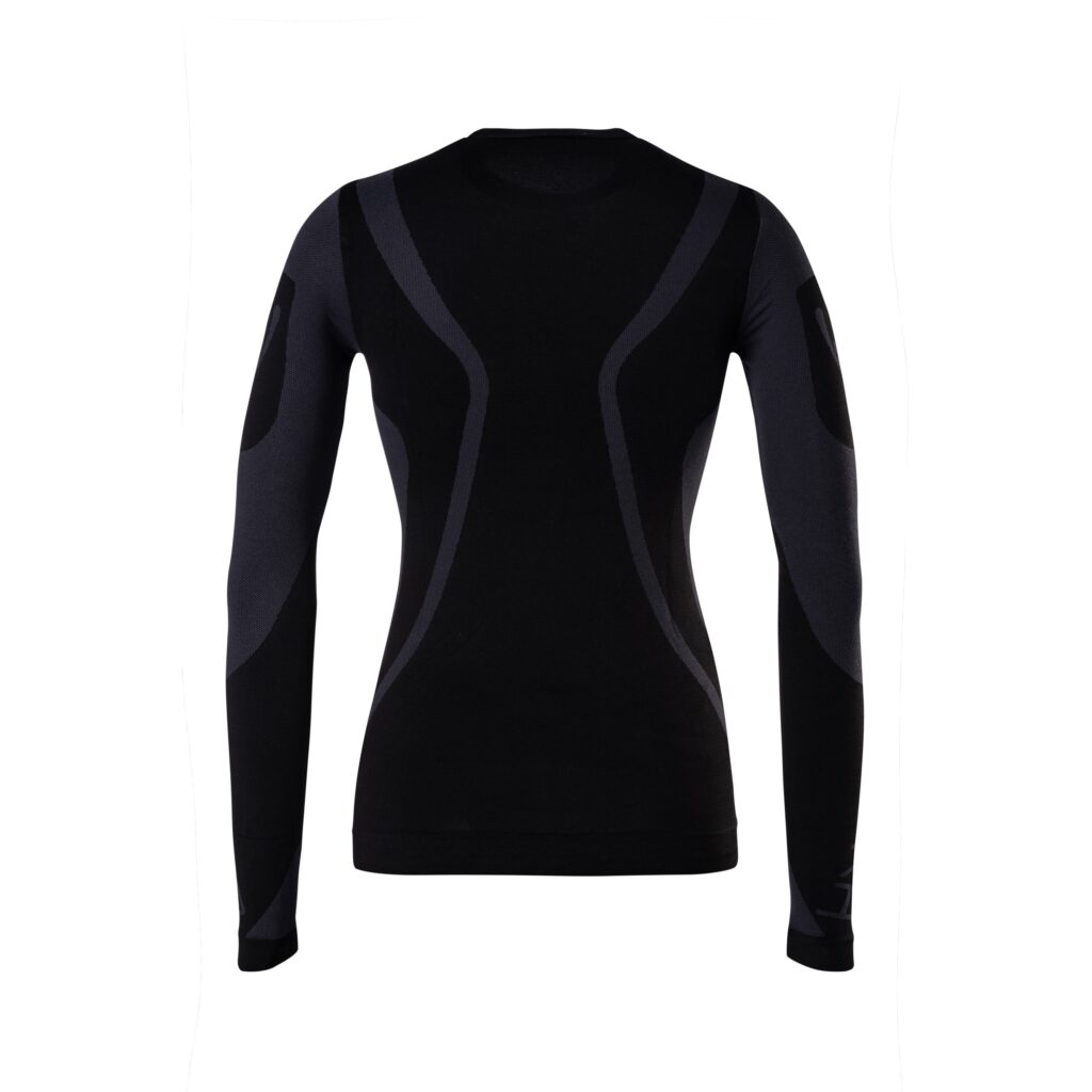 Women's thermal insulating shirt, long sleeves Technical yarn with high insulating capacity, body-fit technology, compact thickness, fit in the figure, made in Italy. FABRIC: polypropylene, polyamide, elastane. DETAILS: Dryarn® 100% recyclable; yarn based on encapsulated silver ions; bacteriostatic and anti-odor; breathable and anti-humidity effect; radiant and reflective: it regulates the body temperature; lightweight and hypoallergenic; seamless. Sizes XS/S - M/L - L/XL